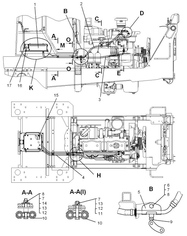 1 Для тропиков. Детали поз. 2-6. 8-14 для тропиков не устанавливаются. 2 Для трактора с гидромеханической трансмиссией. 3 При установке подогревателя Thermo 90 STD Webasto. 4 Для трактора с механической трансмиссией. |
