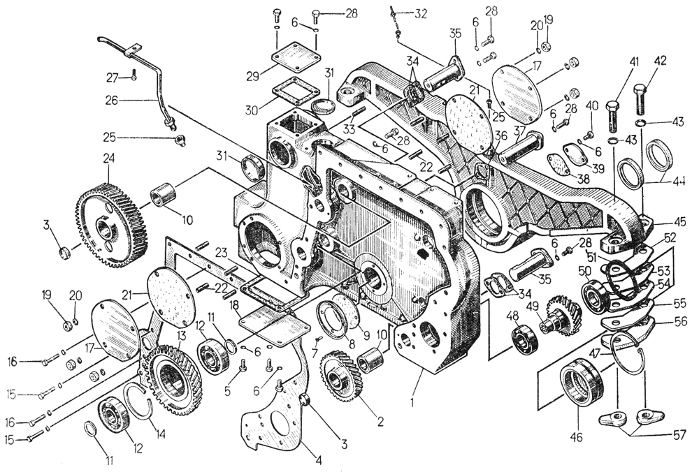 Кожух шестерен распределения и передняя опора дизеля
