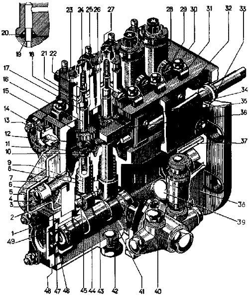 При работе дизеля на высоте 1000 м над уровнем моря во избежание нарушения рабочего процесса уменьшать подачу топлива насосом на 5% на каждые 500 м высоты, что соответствует повертыванию муфты 7 (см. рис. 10) корректора на 0,5 оборота. Для регулирования топливного насоса допускается снятие пломб с последующим опломбированием и составлением соответствующего акта. Работа дизеля на высоте более 3000 м над уровнем моря (барометрическое давление ниже 70 кПа) не допускается. Проверить герметичность пробки паровоздушного клапана заливной горловины водяного радиатора.
