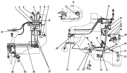Для регулирования привода механизма включения (бендикса) пускового двигателя отсоединить тягу 18 от рычага 20, рукоятку 3 установить в крайнее переднее положение. При выключенном бендиксе повернуть рычаг 20 по часовой стрелке до упора и подсоединить тягу 18.