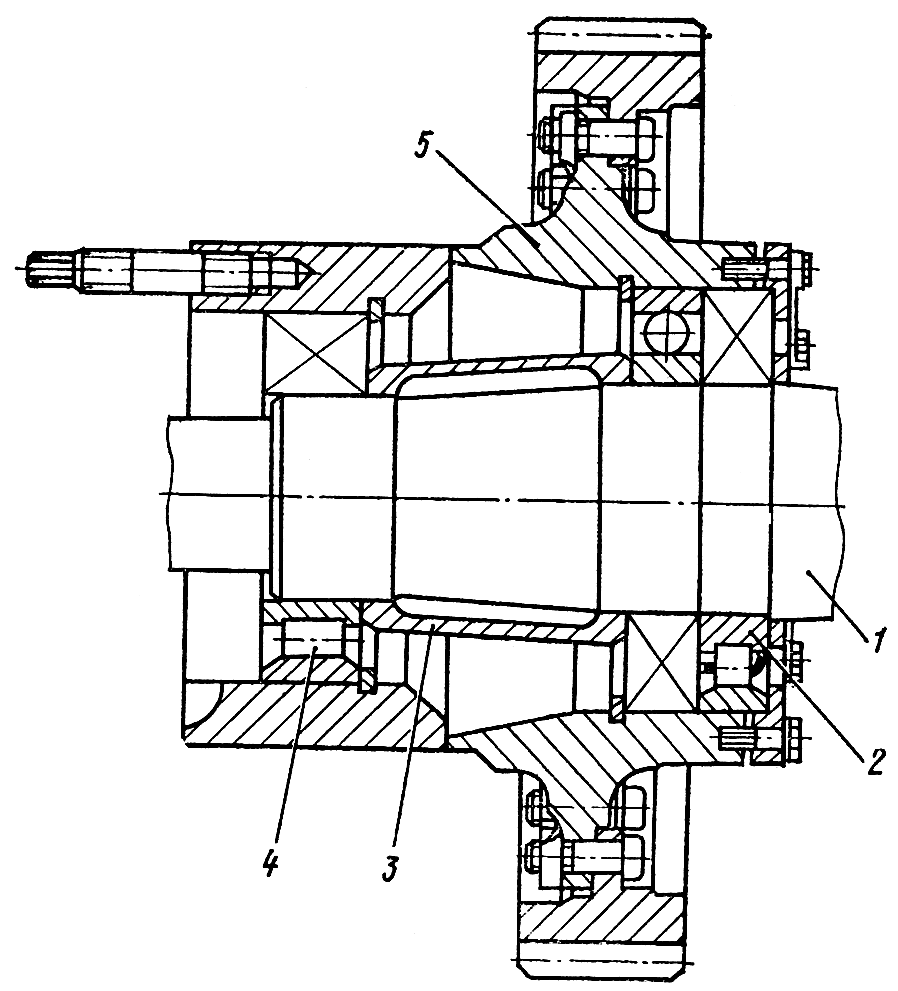 • подвиньте шестерню 5 с подшипником внутрь кожуха бортредуктора до упора (легкими ударами медного молотка через оправку);