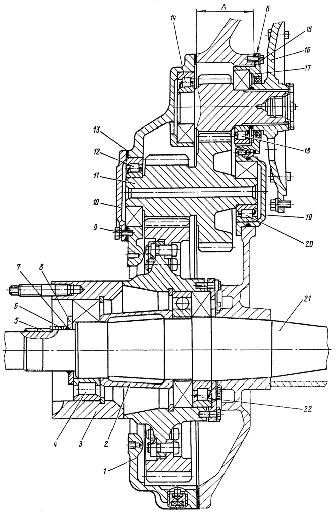 Рис. 266. Двойная шестерня с кожухом бортового редуктора