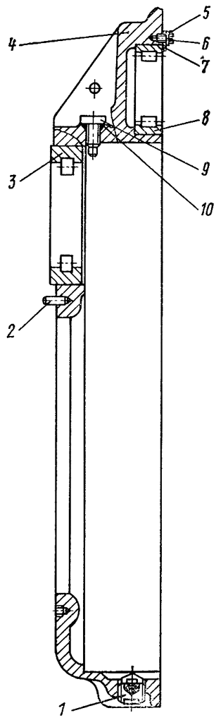 3. шестнадцатью болтами 4 с резьбой М16 и четырьмя болтами с резьбой М12. Момент затяжки болтов 40...60 Н-м (4...6 кгс-м). Установите крышку 10 ( см. рис. 247 ) с прокладкой 9 и закре-1 пите ее шестью болтами 11 с пружинными .шайбами. Момент затяжки болтов 40...60 Н-м (4...6 кгс-м).